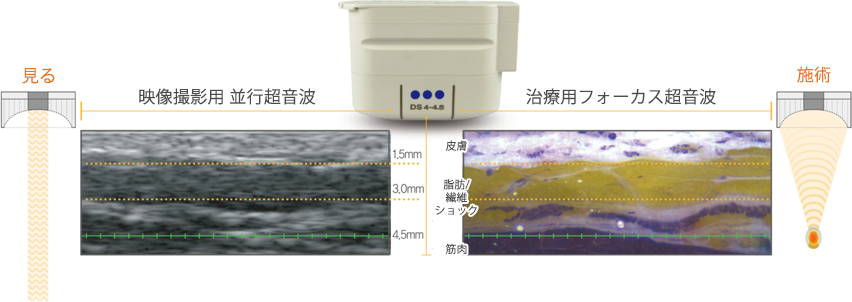 ウルセラは、施術中にリアルタイムで皮膚の深さや構造を確認できる、超音波イメージング技術を搭載しています。